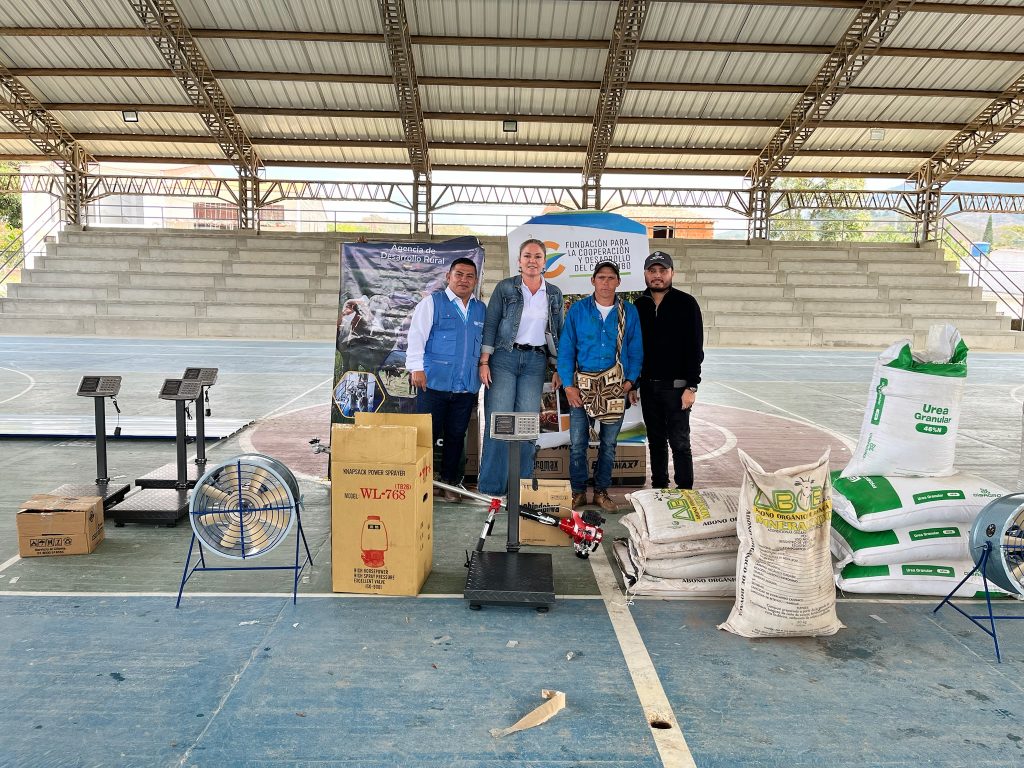 En esta etapa se distribuyeron insumos estratégicos fundamentales para el fortalecimiento de los cultivos, entre ellos abono orgánico, fertilizantes, mangueras, ventiladores para labores de postcosecha, empaques para la comercialización y materiales de ferretería destinados a la adecuación de tambos y sistemas de riego. Estos elementos permiten optimizar el manejo técnico del cultivo y mejorar las condiciones de almacenamiento y preparación del producto.